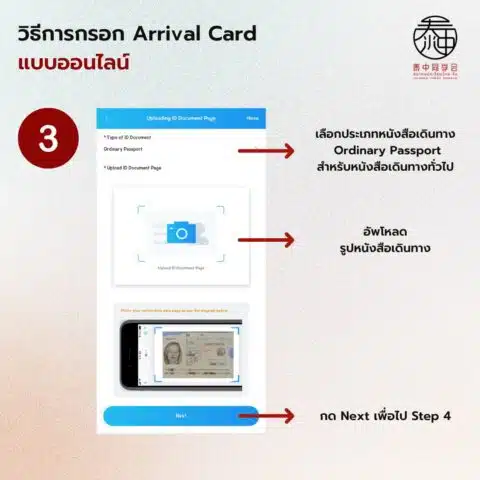 เลือกประเภทหนังสือเดินทาง โดยปกติเราจะใช้แบบทั่วไปจึงต้องเลือก Ordinary Passport แต่ใครที่ใช้ประเภทอื่น เช่น หนังสือเดินทางราชการ สามารถเลือกตามประเภทได้เลย จากนั้นให้กดที่รูปกล้องเพื่ออัปโหลดรูปหนังสือเดินทางของเราได้เลย โดยที่รูปต้องเห็นทั้งหน้าแบบชัดเจนด้วยนะ
