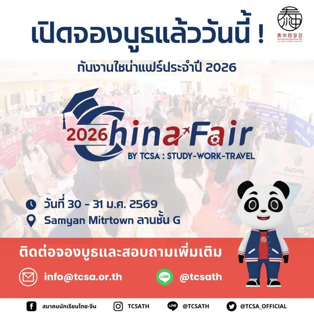 15/09/2025 15/09/2025ประเภท กิจกรรมChina Fair 2025 by TCSA: Study-Work-Travel ฉลองครบรอบ 50 ปี ความสัมพันธ์ทางการทูตไทย-จีน15 – 16 กุมภาพันธ์ 2 […]