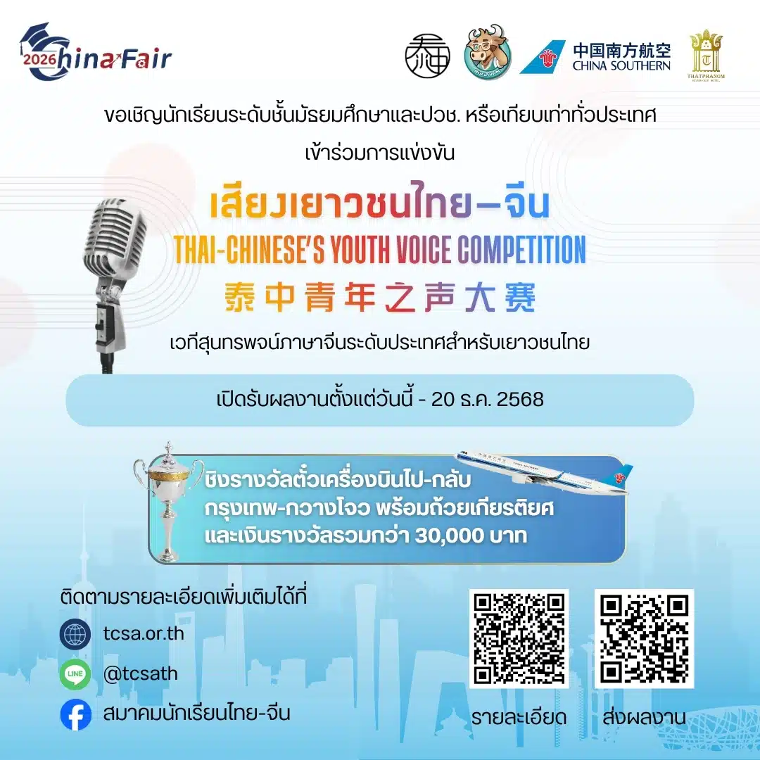 15/11/2025 15/11/2025ประเภท กิจกรรมเปิดรับผลงานการประกวดสุนทรพจน์ภาษาจีน “เสียงเยาวชนไทย–จีน”สมาคมนักเรียนไทย–จีน ขอเชิ […]